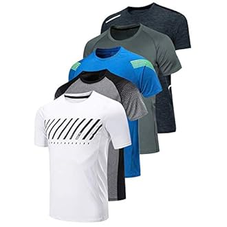 5 Pack Men’s Active Quick Dry Crew Neck T Shirts | Athletic Running Gym Workout Short Sleeve Tee Tops Bulk