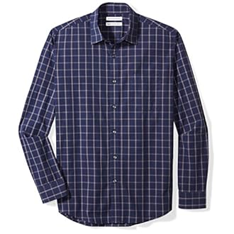 Amazon Essentials Men’s Regular-Fit Long-Sleeve Plaid Casual Poplin Shirt
