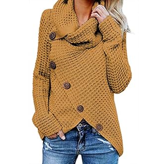 Asvivid Women’s Chunky Button Turtle Cowl Neck Asymmetric Hem Wrap Pullover Sweater